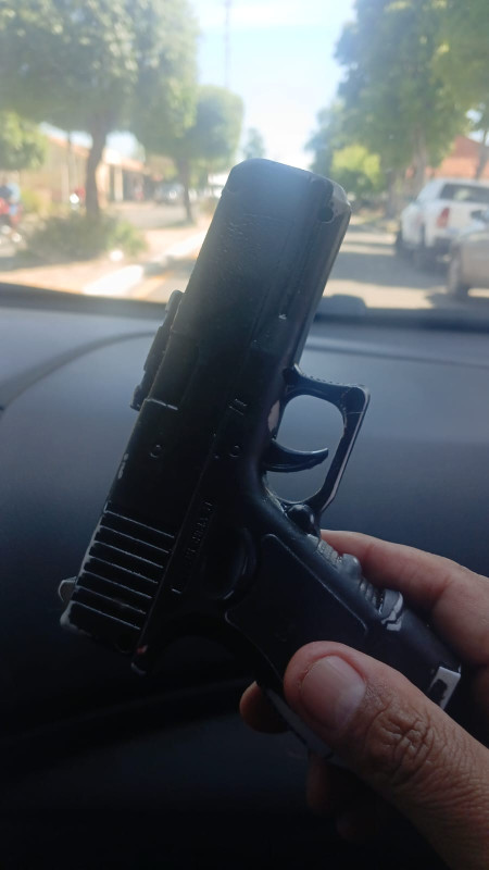O COMANDANTE DESTACOU QUE, APESAR DE SER UM SIMULACRO, O OBJETO PODE FACILMENTE SER CONFUNDIDO COM UMA ARMA VERDADEIRA, PRINCIPALMENTE EM SITUAÇÕES DE BAIXA VISIBILIDADE, COMO DURANTE A NOITE OU NO INÍCIO DA MANHÃ.